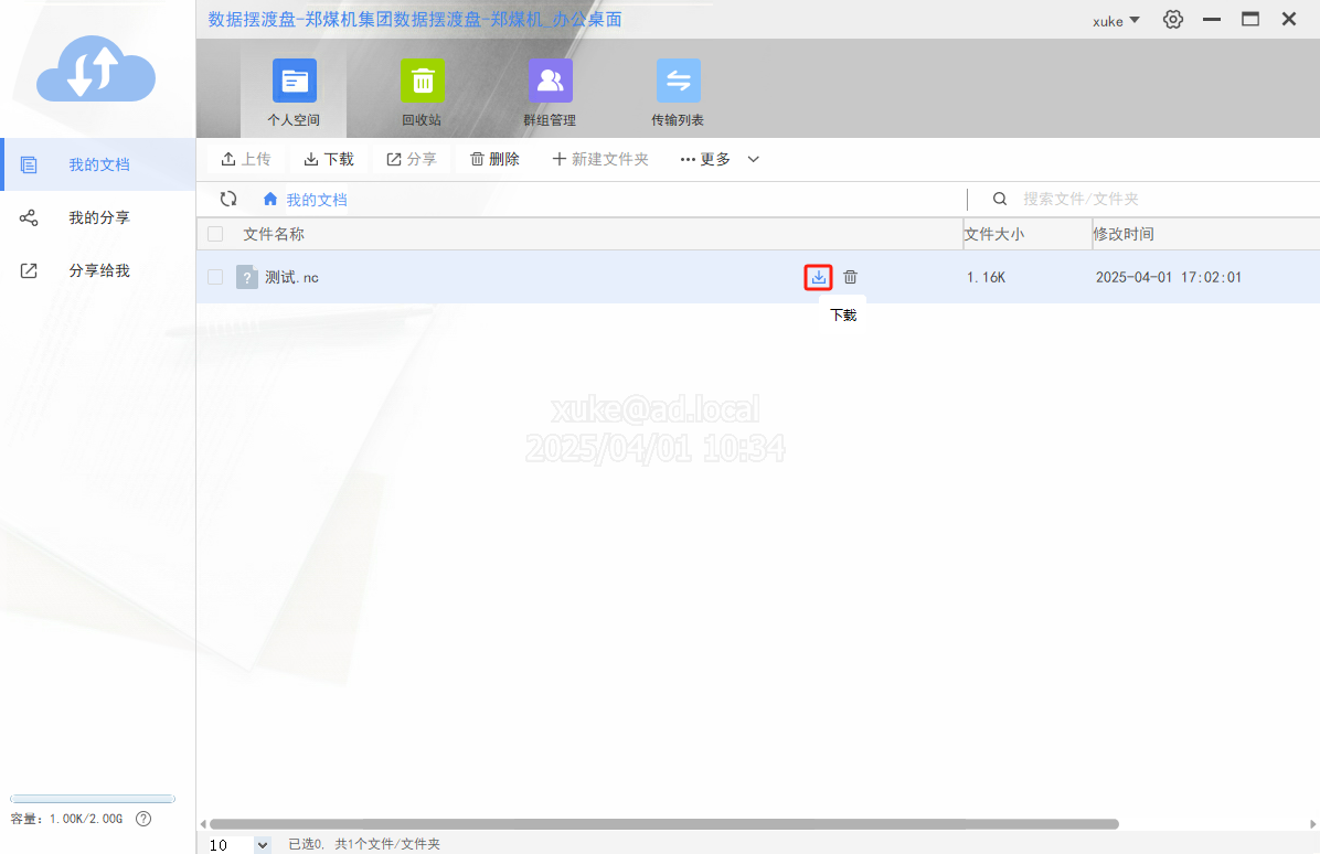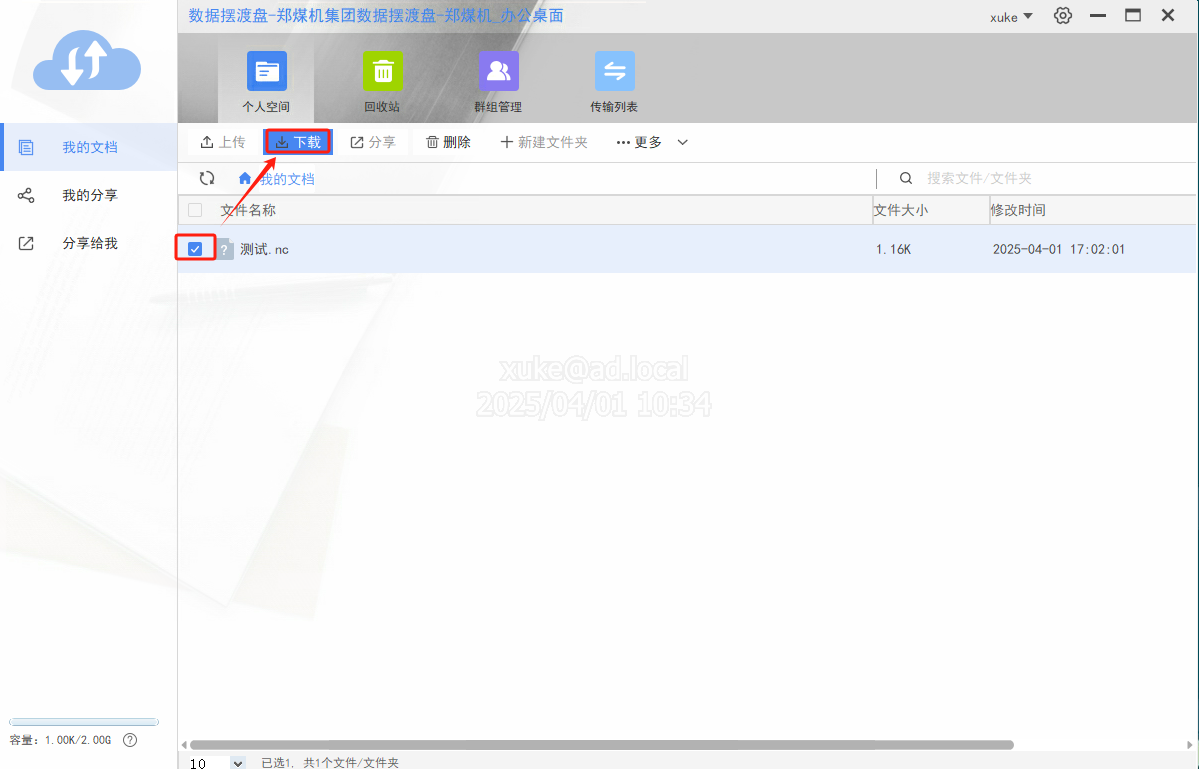 2.在对应文件后点击【下载】,或勾选对应文件选择上方的【下载】