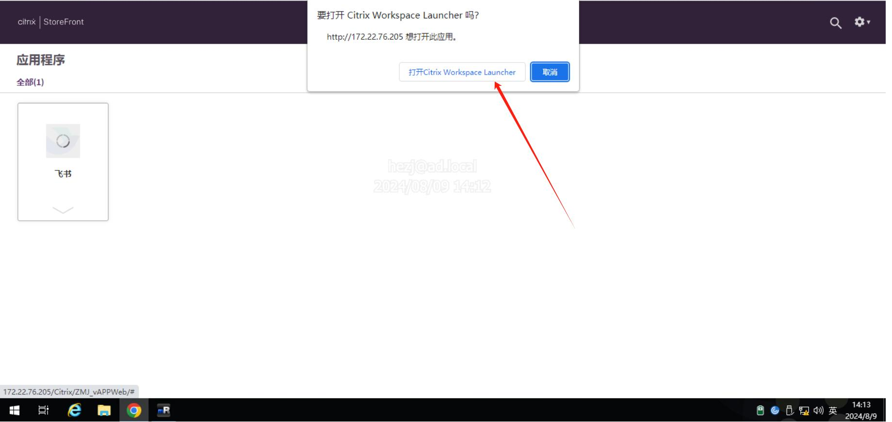 默认用户不开通飞书vAPP登录权限。 登录飞书 1.点击飞书启动 2.点击打开Citrix Workspace Launcher 3.打开后扫码登录即可使用 退出飞书 1.右键桌面右下角飞书图标 2.点击退出飞书