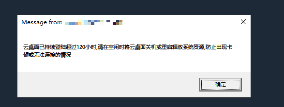 当使用仿真桌面出现如下提示时,说明桌面已持续运行超过