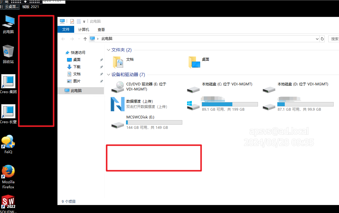 登录到研发桌面或办公桌面时,桌面、文档、下载等目录空白或不显示个人盘;